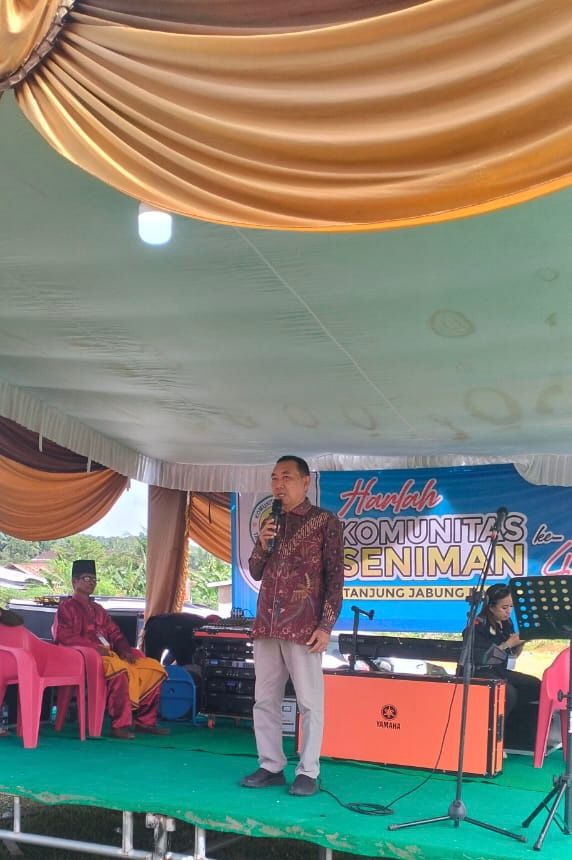 TANJABBAR , TJ – Ketua Dewan Perwakilan Rakyat Daerah (DPRD) Kabupaten Tanjung Jabung Barat, Hamdani, SE hadiri acara perayaan ulang tahun ke-4 Komunitas Seniman Tanjung Jabung Barat di Desa Sri Agung, Kecamatan Batang Asam.