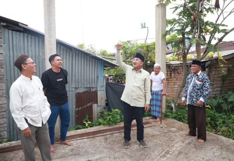 Bupati Anwar Sadat didampingi oleh rombongan, termasuk Ketua dan Anggota BAZNAS Tanjabbar, perwakilan Camat Bram Itam, Lurah Bram Itam Kiri, serta Ketua RT setempat.